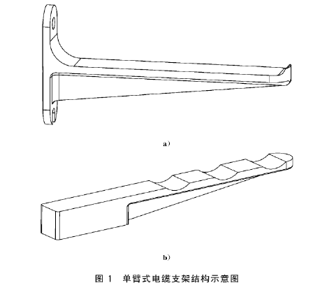 2.1 按照單件制品的托臂數(shù)量分為單臂式和多臂式分別以字母S和M表示,單臂式電纜支架常見結(jié)構(gòu)型式如同1所示. 多臂式電纜支架常見結(jié)構(gòu)型式如同2所示,