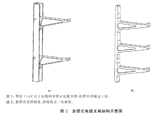 2.2 電纜支架按單個(gè)托臂所能承受的垂直荷載,分為l級(jí)、2級(jí)、3級(jí)、4級(jí)、5級(jí).